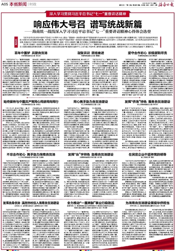 深入学习贯彻习近平总书记“七一”重要讲话精神~~~——海南统一战线深入学习习近平总书记“七一”重要讲话精神心得体会选登