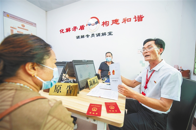 据了解,新村法庭调解室积极发挥党员调解员作用,今年1月至7月,共调解案件123件,帮助人民群众解决问题,化解矛盾。本报记者 袁琛