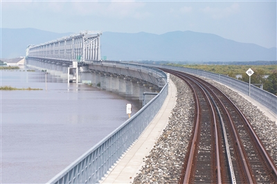 8月17日,同江中俄黑龙江铁路大桥实现铺轨贯通。当日,在同江中俄黑龙江铁路大桥施工现场,中俄两国准轨接口最后一组轨道夹板安装完成,标志着中俄两国首座跨江铁路大桥——同江中俄黑龙江铁路大桥实现铺轨贯通,为大桥全线开通运营奠定了坚实基础。