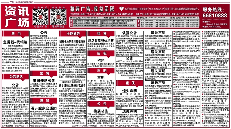 洋浦冠联达物流有限公司(注册号:460300000035373)将于2021年8月20日全天在洋浦经济开发区丽思顿酒店811室召开股东大会,讨论公司注销事宜,望股东赖少茂准时参会。联系人:符明海,电话:13302759135。