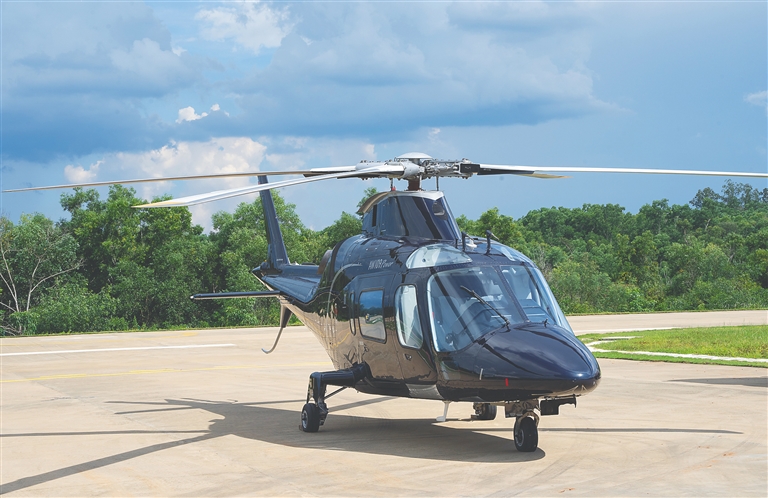 此架进口直升机,由在上述通用机场驻场运营的海南海直通用航空有限公司引进,其生产商为意大利阿古斯塔·韦斯特兰公司,属于轻型、双发、八座多用途直升机。