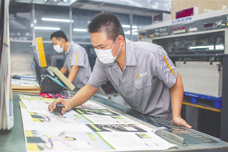 截至8月17日,全省教材收书率达81.59%,剩余教材正在紧锣密鼓地印制中。预计8月25日左右,我省中小学教材可全部入库到物流配送中心,入库教材将随到随发,确保开学前将教材分发到校。图为8月18日,印刷厂质检人员在检查教材印刷质量。