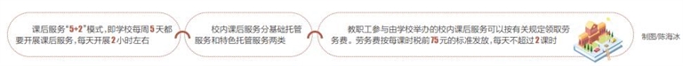 省教育厅要求,各市县教育行政部门要立即着手,会同有关部门建立和完善课后服务经费保障办法,通过财政补贴、服务性收费或代收费等方式保障经费,完善参与教师和人员的补助政策。教职工参与由学校举办的校内课后服务可以按有关规定领取劳务费。劳务费按每课时税前75元的标准发放,每天不超过2课时,并应依法纳税。离退休教师和其他具备资质的社会专业人员或志愿者参与校内特色课后服务的参照此标准执行。