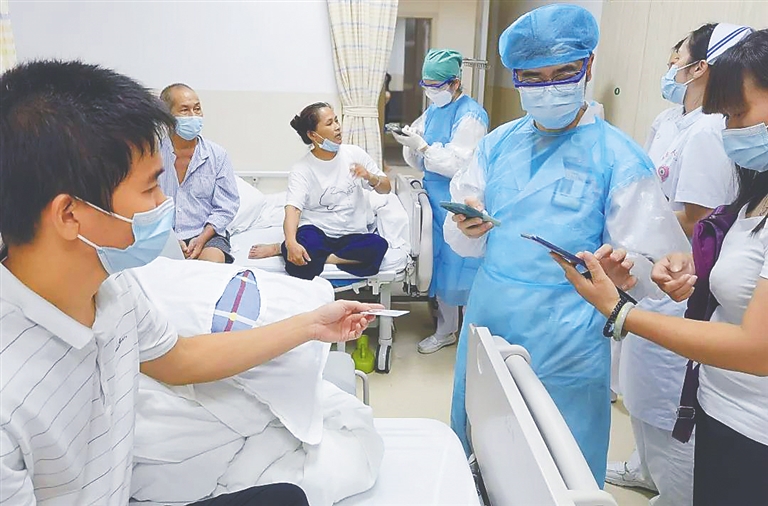在肛肠外科,患者需要熟软流食,医护便自制面条,科主任亲自端到患者手上与患者共餐。他们建立了兄弟姐妹般的信任。