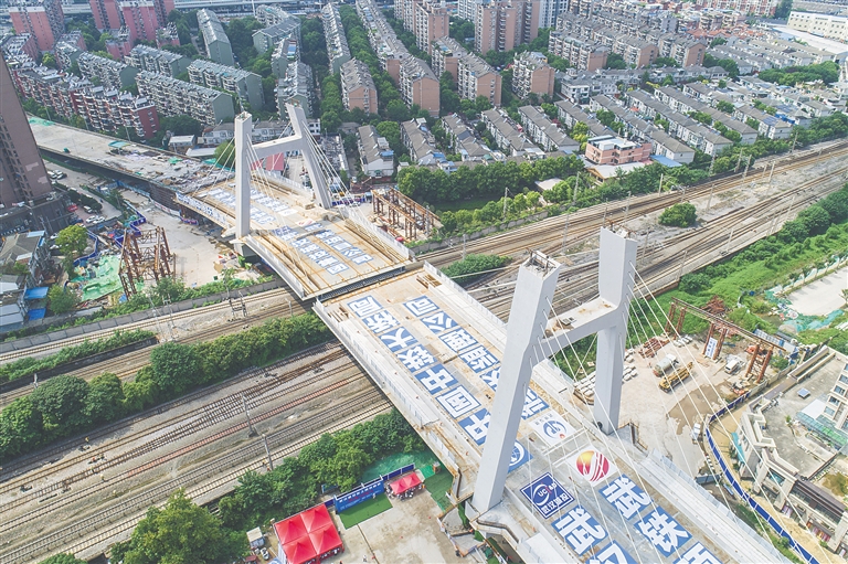 这是8月18日拍摄的成功转体后的武汉建安街上跨铁路桥。