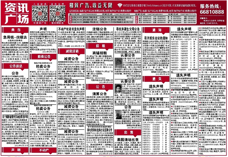 本委受理申请人吴强、卢传芬、卓小忆、梁倨铭、邢雪萍、史秋霞、董霞、余斌与你公司劳动争议一案(海劳人仲案字〔2021〕第604-608、695、783、806号),现依法向你公司公告送达劳动仲裁申请书及证据材料、应诉通知书、开庭通知书等,限你公司在公告之日起30日内来本委领取(海口市西沙路4号,联系电话:0898-66751119),逾期视为送达。并定于公告期满后的2021年9月24日上午九点在本委仲裁庭开庭审理,逾期将依法缺席裁决。