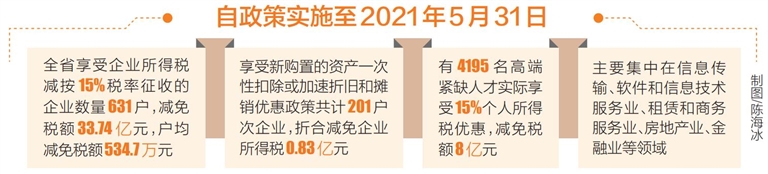 本报海口8月20日讯 (记者梁振君)《海南自由贸易港建设总体方案》发布以来,海南全力以赴抓紧落实政策早期安排,全面深化改革开放生机勃勃,自由贸易港建设蓬勃展开,一批核心政策落地实施,其中,“两个15%”所得税优惠政策快速落地,有效吸引了市场主体和人才集聚。这是海南日报记者8月20日从省委深改办(自贸办)获悉的。