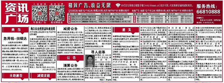 因机构改革,我单位须对原海口市规划委员会美兰分局债权债务进行清算,请中国宝安集团海南实业公司、海南对外贸易总公司、中国旅行社旅游公司、海南荣泰石油化工有限公司、海南启源装修设计工程有限公司。自公告起30日内凭相关证明材料到我单位办理登记手续。逾期申报的债权债务不予受理。联系人:赵紫琳。电话65325875。地址:海口市海甸岛五西路德利路5号。