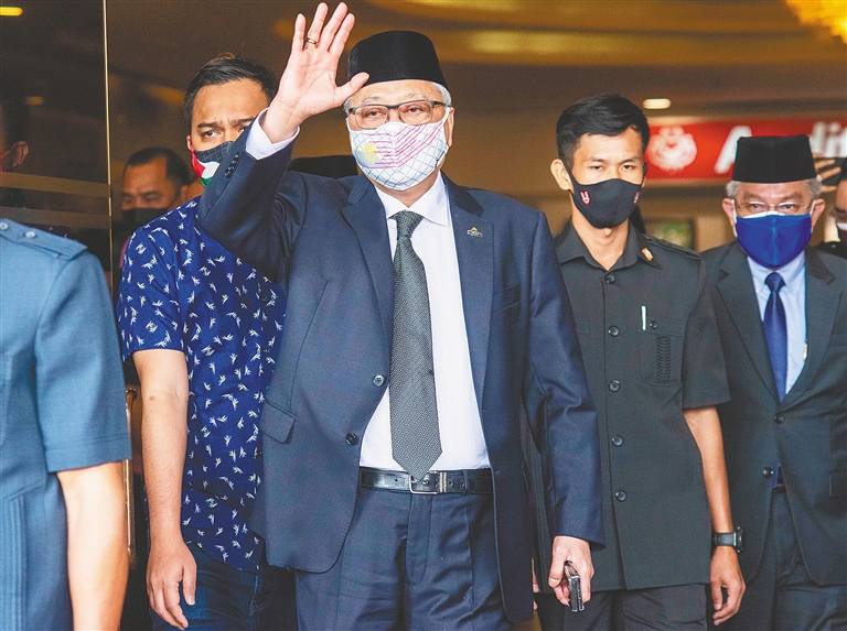 8月19日,在马来西亚吉隆坡,伊斯梅尔·萨布里(中)出发前往国家皇宫觐见最高元首。 新华社发
