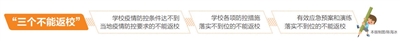 会议要求,各地各校要坚持属地管理的原则,充分借鉴去年以来校园疫情防控工作形成的好经验、好做法,从细从实从快做好秋季学期开学疫情防控工作。要细化开学标准,科学制定“两案十制”(疫情防控工作方案、疫情应急处置预案和人员动态摸排及信息报告等10项制度),落实“三个不能返校”(学校疫情防控条件达不到当地疫情防控要求的不能返校,学校各项防控措施落实不到位的不能返校,有效应急预案和演练落实不到位的不能返校)的总体原则。