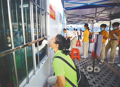 8月21日,三亚南山文化旅游区员工在崖州区卫生院进行核酸检测。