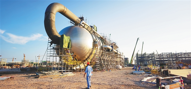 在项目施工现场,同样在加快安装的还有8台乙烯裂解炉,这是整个项目的核心设备。杨文学介绍,为克服施工地方小、设备结构复杂、焊接工程量大、交叉作业多等困难,乙烯裂解炉自今年4月30日开始安装以来,施工单位便在不断优化施工方案,同时根据工程进度逐渐增加人手和设备。“乙烯裂解炉高达72米,单台重量达3300吨,乙烯裂解炉及炉前管廊的焊接工程量达到整个乙烯装置项目的三分之一。”杨文学说,即便工程量巨大,乙烯装置项目施工时间还是能比定额工期提前半年完工。