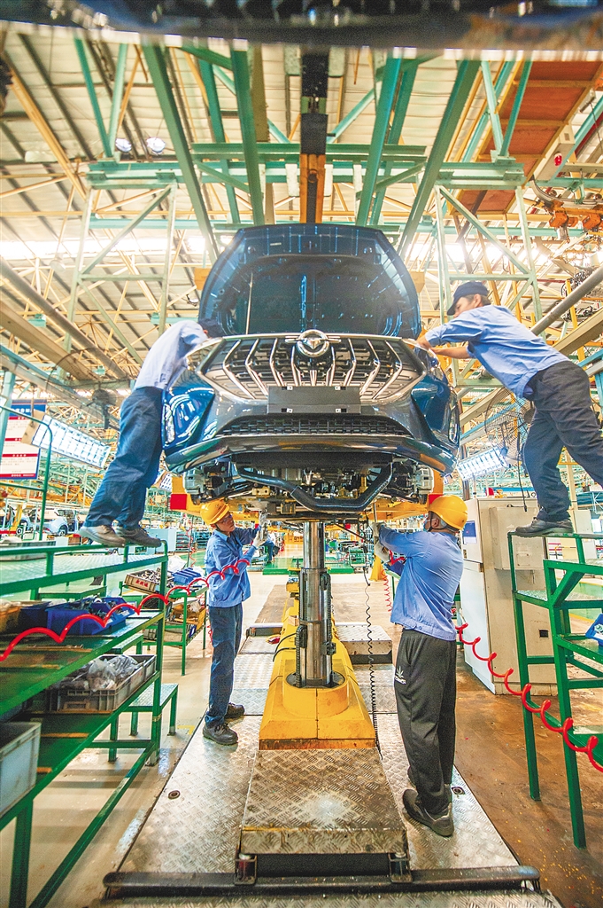 国家工业和信息化部近日公布了《车联网身份认证和安全信任试点项目名单》。海马汽车两项目入围。图为8月23日,在海马汽车海南基地总装车间,工人在组装车辆。