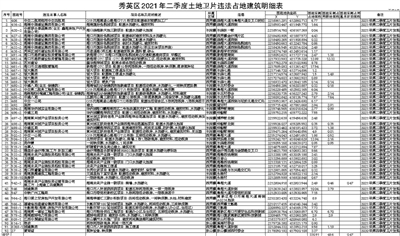 附件:秀英区2021年第二季度土地卫片违法占地建筑明细表