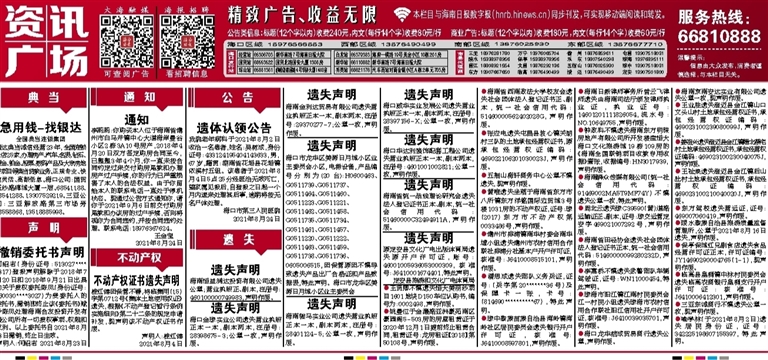●周北云遗失琼C39590(黄)道路运输证正、副本,证号:琼交运管定安字469021007292号,声明作废。