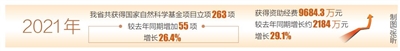 截至目前,我省今年共获得国家自然科学基金项目立项263项,较去年同期增加55项,增长26.4%;获得资助经费9684.3万元,较去年同期增长约2184万元,增长29.1%。