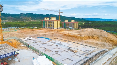 虽已立秋,南海之滨的鹿城仍然高温不散。平土地,筑地基,起吊塔……8月24日,在位于三亚市崖州区的国家南繁生物育种专区项目施工现场,海南农垦南繁产业集团有限公司(以下简称海垦南繁集团)正组织工人紧锣密鼓地推进项目建设,各种机械的轰鸣声奏成一曲“加油干”的大合唱。