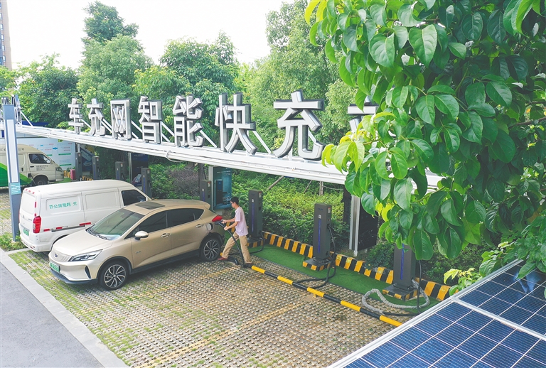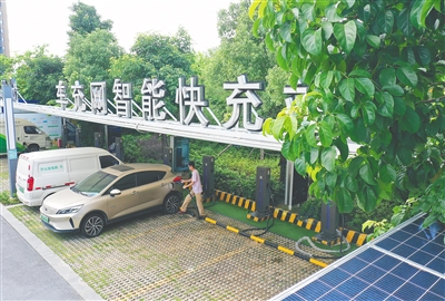 这是8月26日在福州市马尾区福州物联网产业创新发展中心园区内拍摄的“光储充检”一体化智能快充站。