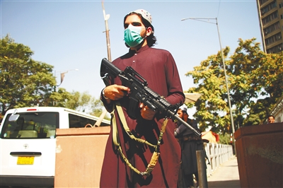法新社描述,28日,机场地面设施和附属建筑到处可见全副武装的塔利班人员,美国海军陆战队士兵在候机楼楼顶监视着他们。报道说,阿富汗战争开始20年后,这对敌手相距仅30米,却没有开枪。