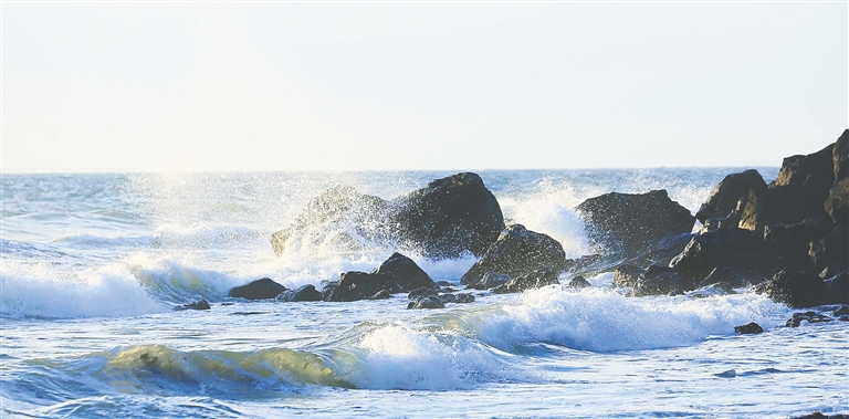 关于龙门的传说无从考证,不过此处的“激浪”确实颇为壮观。层层叠起的海浪冲向岸边的礁石发出巨响,有一种排山倒海的气势。《儋县志》对“龙门激浪”有过这样的描述:大海潮来,触石澎湃,浪花卷石,如万马奔腾,海风吹浪,触石而鸣,回响十余里。清朝的拔贡陈有壮曾写下一首七言绝句:龙门峭石势嵯峨,远望潮来卷白波。漫道艰难惊蜀道,吾乡仍有险途多。