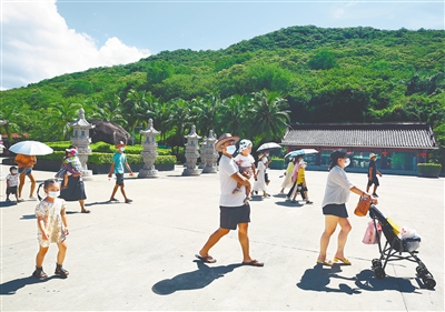 随着近期疫情防控形势好转,全国多地恢复跨省团队旅游及“机票+酒店”经营业务,一些游客抓住暑期尾巴出门旅行,三亚各景区逐步恢复旅游热度,各地游人纷至沓来。据统计,当天三亚南山文化旅游区接待游客量超过3000人次。