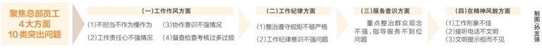 根据专项方案,该集团将聚焦总部员工在工作作风、 工作纪律、服务意识、精神风貌共4大方面的10类突出问题进行专项整治。