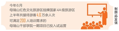 今年6月,母瑞山红色文化旅游区挂牌国家4A级旅游区,上半年共接待游客4.6万余人次;此外,可满足200人培训需求的母瑞山干部学院一期项目也已投入试运营。定安县委有关负责人表示,该县激活母瑞山革命根据地纪念园这个“红色引擎”,加快推进纪念园改造升级,打造全省乃至全国知名的党员教育培训基地;同时,加强垦地融合发展,与海垦控股集团共同组建红色村庄发展平台,科学规划乡村振兴。