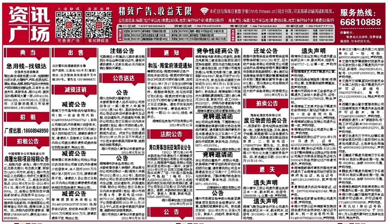 一、招租内容:标包1:海口市龙华区龙昆北路51号龙昆大厦,面积为14801平方米;标包2:海口市龙华区义龙西路21号侨汇大厦第五层,560平方米。二、报名时间及地点:2021年8月30日-2021年9月6日,海口市玉沙路玉沙国际8004。三、招租公告同时在中国招标投标公共服务平台(http://www.cebpubservice.com/)、中国采购与招标网、中国烟草总公司海南省公司外网、海南日报上发布。四、详细内容获取请联系:覃阿丽17608903675、蔡先生0898-65806080。
