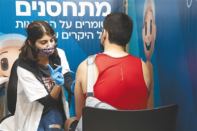 8月30日,一名以色列男子在耶路撒冷接种新冠疫苗加强针。