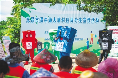 “垃圾分类益处多,环境保护靠你我。”8月27日,在文昌市潭牛镇大庙村,一场精心准备的短剧表演吸引了众多村民驻足,该镇政府工作人员、环卫部门工作者和志愿者同时向村民们讲解垃圾分类知识,以及垃圾分类示范点的运营流程,引导村民自觉践行垃圾分类。