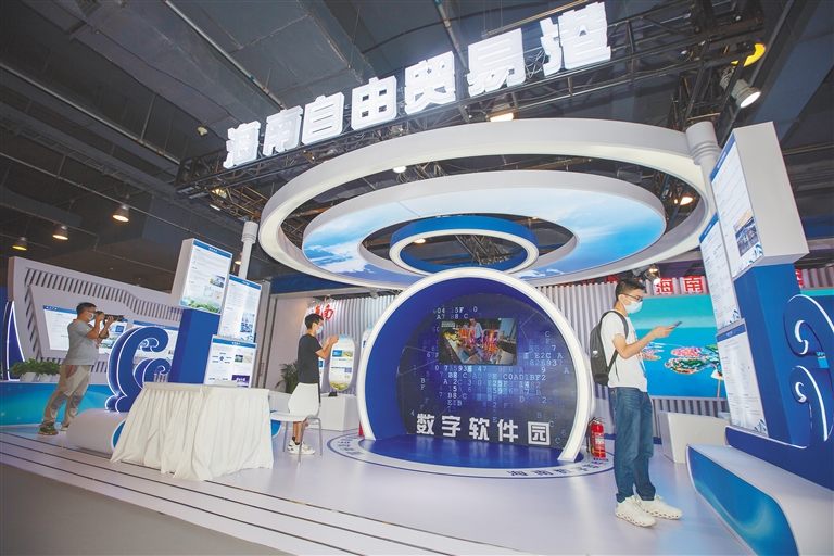 中国国际服务贸易交易会(以下简称服贸会)是我国对外开放三大展会平台之一,也是各地宣传推介服务贸易商机的大舞台。走进国家会议中心综合展区省区市及港澳台展区,各个展馆中,海南综合形象馆“海南自由贸易港”几个大字显得尤为特殊和醒目:以“自由贸易港”命名的展馆只此一家。