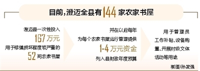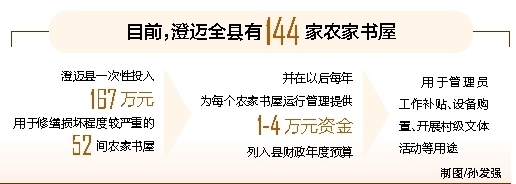 与此同时,澄迈县为鼓励和引导社会力量创办和管理农家书屋采取了一系列奖励办法,从建设方面奖励分为5个档次,最低奖励5000元,最高奖励10万元;在管理运营方面奖励也分为5个档次,最低奖励3000元,最高奖励5万元。