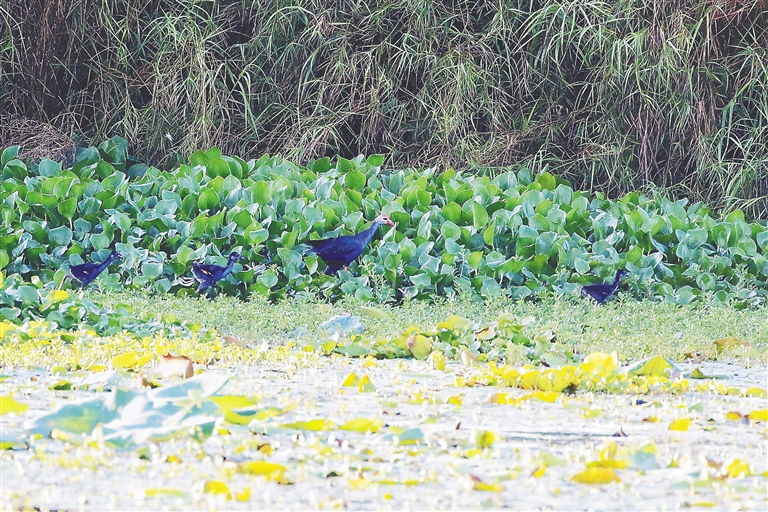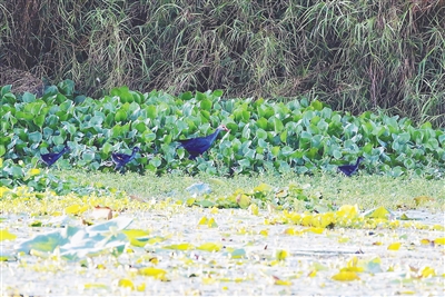 8月28日,昌江爱鸟队在对海尾湿地公园进行本年度第10次鸟类生态监测时,发现一只紫水鸡带着三只小紫水鸡出来觅食,这让队员们异常惊喜。据介绍,此前昌江爱鸟队已经连续4个月没有在海尾湿地公园见到紫水鸡的踪影,爱鸟队非常担心紫水鸡会因为人为干扰迁徙或是被违法捕捉。