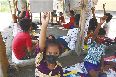 近日,印度迎来开学季,受新冠疫情影响,印度西孟加拉邦的学校处于关闭状态。 新华社/法新