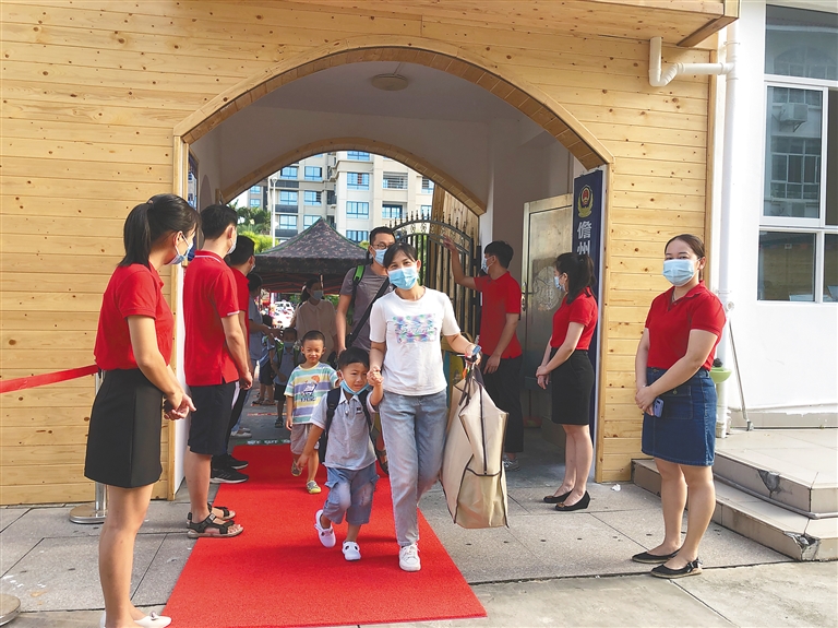 ④ 儋州市第一幼儿园教职工迎接小朋友返园。通讯员 韦雪梅 摄