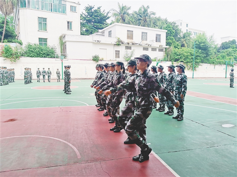 ① 9月1日,儋州市第二中学高一年级新生军训。 通讯员 符武月 摄