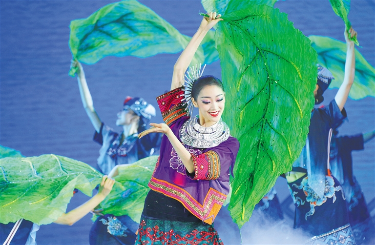 捧一轮如诗明月,挽一缕如歌晚风,踏着梦一样盈盈的舞步,若画卷般铺陈开张,灵秀山野、青翠蕉林、璀璨黎锦、丰收稻田……
