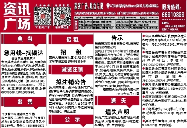 银达典当诚信经营23年,全国连锁分店25家,办理房产、汽车、名表、钻石、黄金、铂金、股票、数码产品及大宗房地产项目等典当贷款业务。正规专业、快速灵活、高额低息。海口公司:国贸玉沙路椰城大厦一层。68541188、68541288、13307529219。三亚公司:三亚解放路第三市场旁 88558868,13518885998。