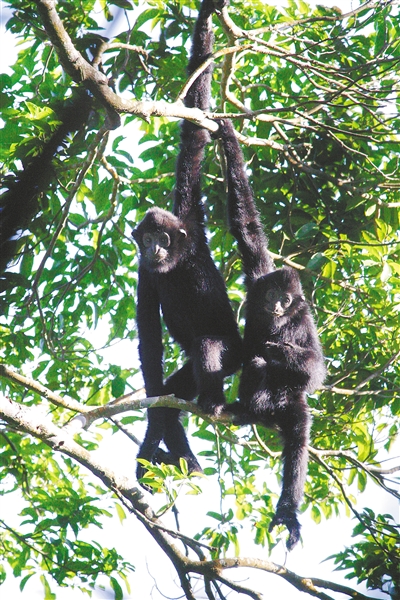 “它们会折断树枝,抛向空中,接住,再抛起,类似于人在玩耍。”在研究海南长臂猿的过程中,贵州师范大学生命科学学院教授邓怀庆发现了这一有趣的现象。邓怀庆认为,海南长臂猿通过这样的方式分析判断树枝的承重力,从而确定自己能不能抓住这根树枝荡到树林的另一端。