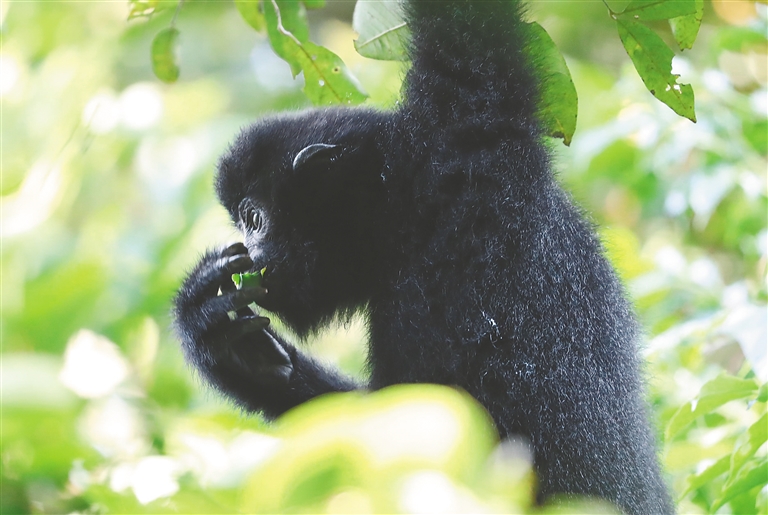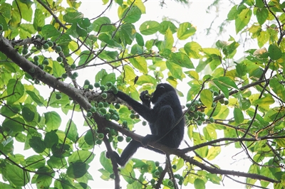 “正是这些与人类十分相似的习性,让我们觉得海南长臂猿是充满灵性的动物。”李文永说。海南长臂猿不仅是“吃货”,也扮演着森林植物种子传播者的角色,包裹着果核的猿粪落进泥土,会长出新的植物。