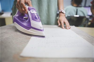 在现场,记者发现了一只熨斗。“难道还能像熨衣服一样熨烫文件吗?”“已经发黄发脆的文件经得起如此高温?”现场一名工作人员看出了记者的疑惑,解释说,在进行扫描前,要确保文件没有皱痕,熨烫正是起到除皱的作用,但使用起来也有讲究。“熨斗的温度应保持在40摄氏度至50摄氏度左右,根据温度高低动作幅度也要随之调整,温度高,轻快扫过即可。”
