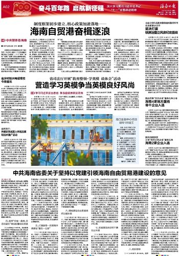| 海南日报 奋斗百年路 启航新征程 002 2021-09-061 2021年09月06日 星期一 |
