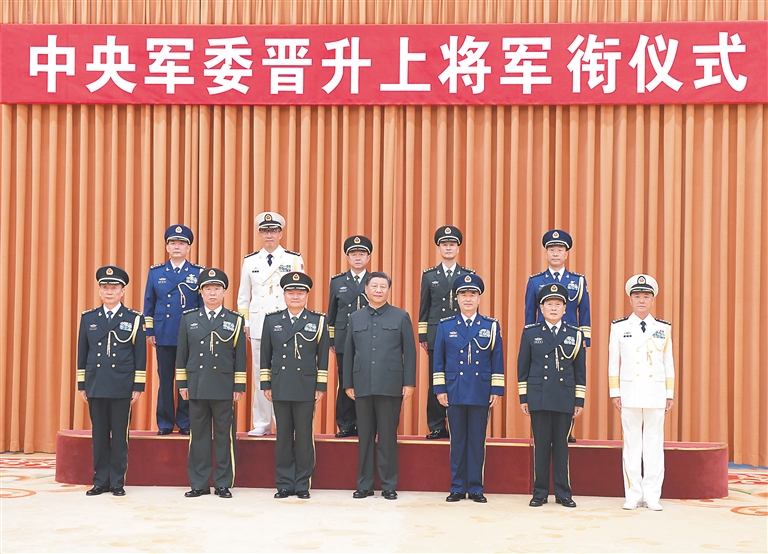 新华社北京9月6日电(记者梅常伟)中央军委晋升上将军衔仪式9月6日在北京八一大楼隆重举行。中央军委主席习近平向晋升上将军衔的军官颁发命令状。