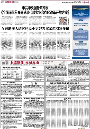 中共中央国务院印发《全面深化前海深港现代服务业合作区改革开放方案》