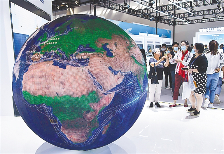 9月7日,2021年中国国际服务贸易交易会在北京落下帷幕。据初步统计,本届服贸会达成各类成果1672个。图为观众在服贸会国家会议中心数字服务专区参观。新华社记者 武巍 摄