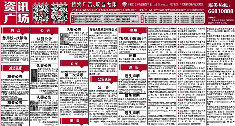 海南新都传媒有限公司(信用代码:91460100687286673D)遗失公章、法人(林依依)私章、营业执照正本及副本,声明作废。