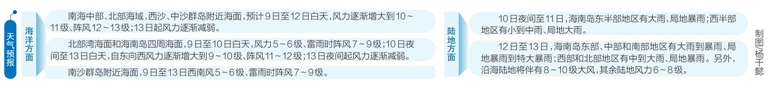 海南省气象台预计,受“康森”影响,预计9日至13日,南海中部、北部海域和海南岛将有强风雨天气。