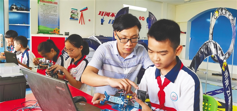 “吴老师讲课生动有趣,善于利用日常生活中的常见物体来给学生举例说明,通俗易懂,学生们很喜欢上他的课。”儋州市新州镇中心学校校长陈泽对海南日报记者说。