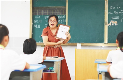 “英语教学应该充满师生互动。”周小慧说。9月1日这堂英语课的学习任务是学习辨认animals(动物)。周小慧拿出手工制作的教具。擅长情境设置和互动教学的她,让学生专注于课堂教学内容,“指手画脚”的教学方式让旁听者也觉得极富感染力。几乎“全英授课”的课堂,则打破了人们以往对乡村英语课的刻板印象。