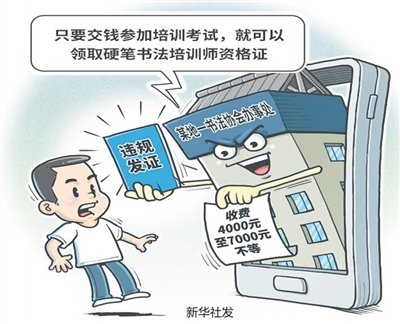 没有书法基础,只要交钱参加培训考试,就可以领取硬笔书法培训师资格证,办证机构还声称有了这个证就可获得开班办学许可。